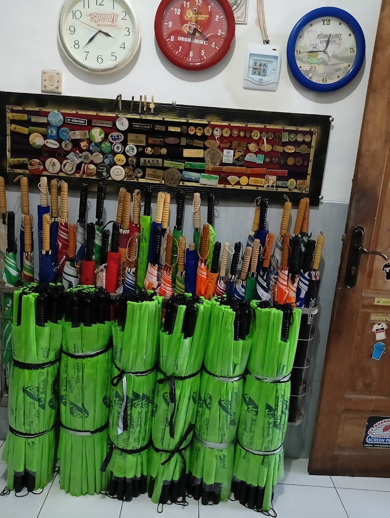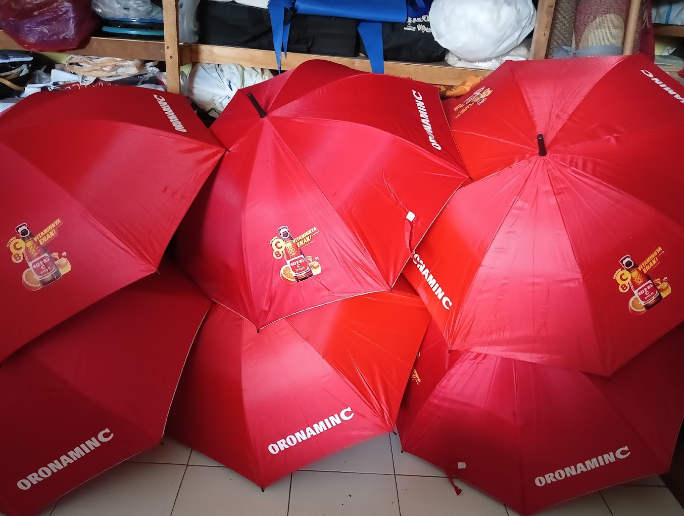 Kami melayani Payung - Souvenir Cinderamata Reklame Promosi - Percetakan - Sablon - SOUVENIR : Asbak, Ballpoint, Botol, Gantungan Kunci, Gelas, Gordon, Hem, ID Card, Jaket, Jam, Jepit Dasi, Kalung, Gelang, Kaos, Mug, Papan Nama, Patung, Payung, Pin, Piring, Plakat, Rompi, Tas Kain, Tas Kertas, Tas Plastik, Tenda, Tropy, Toga, Topi, Vandel, dan lain-lain.